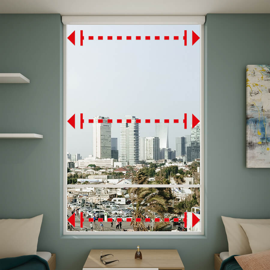 Toma las medidas del ancho del marco de la ventana en la parte de arriba, en el medio, abajo y elige la menor.